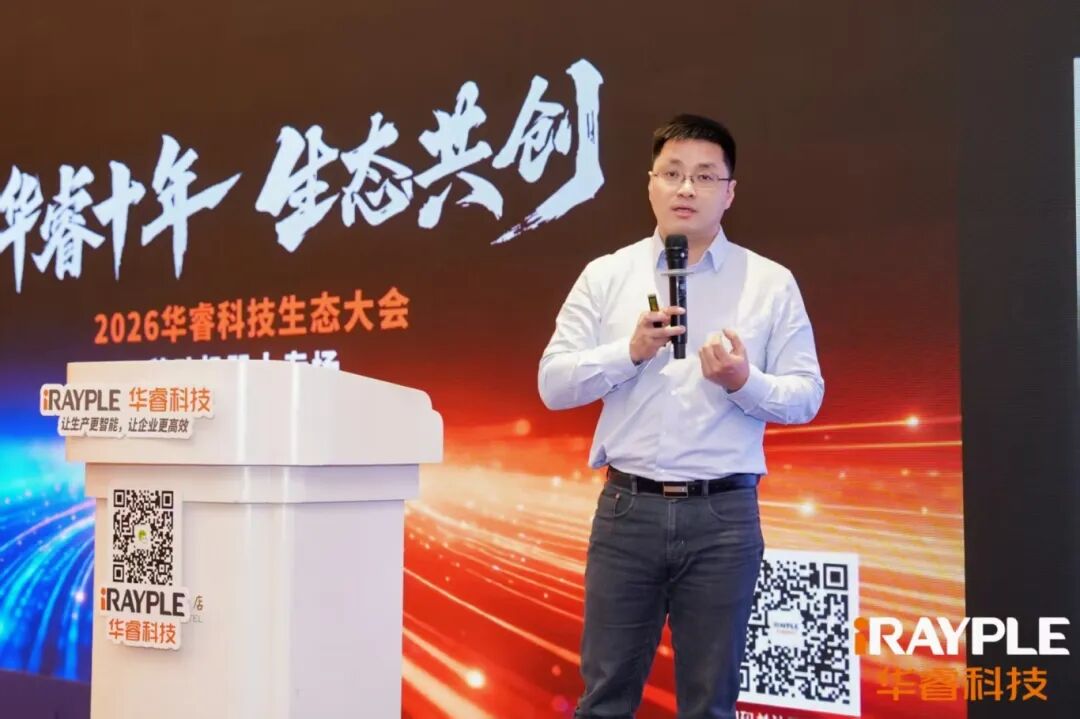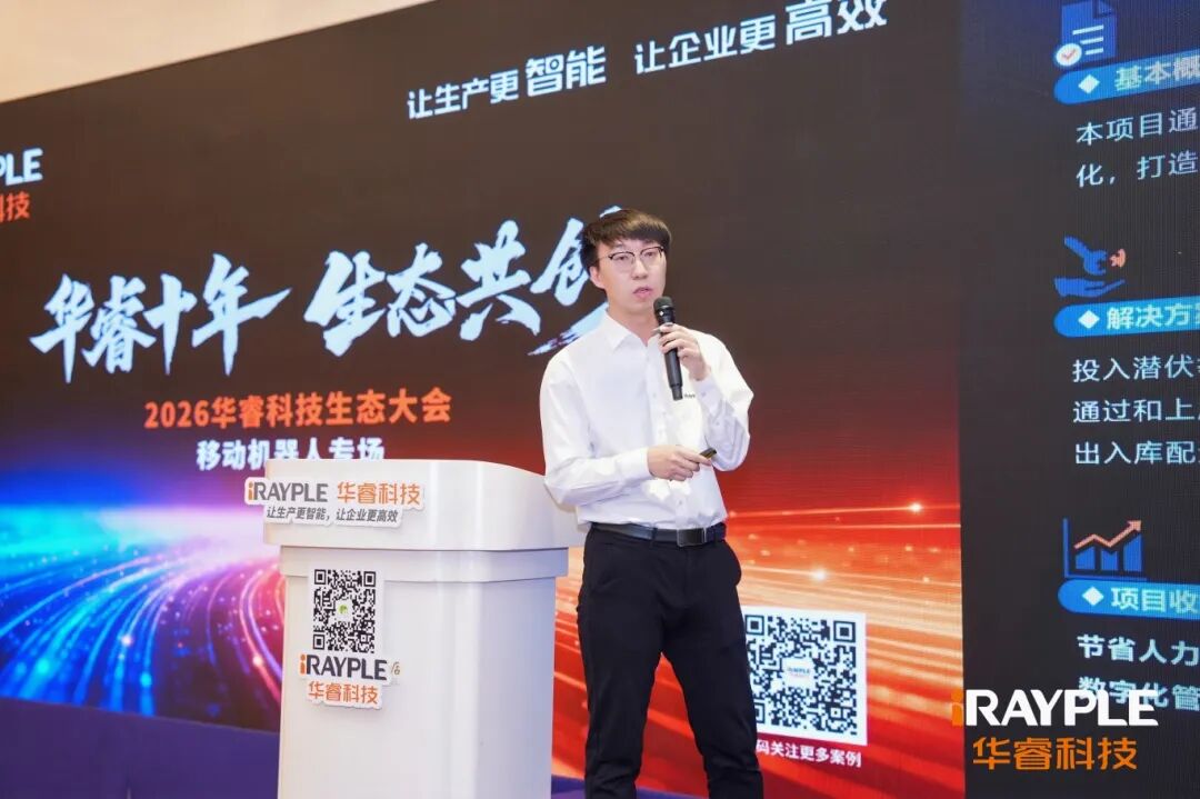 在本次大会的开场致辞中,华睿科技副总裁穆方波回顾了在移动机器人领域的十年深耕——从持续的技术积淀到系统的生态构建,逐步形成了覆盖多行业多场景的全栈产品与解决方案能力。展望未来,华睿科技将以AI与具身智能为驱动,进一步深化机器人与工业场景的融合能力;以质量、服务与成本优势,构建可持续的信任体系;以协同合作与价值共生,持续拓宽智能制造的生态边界。