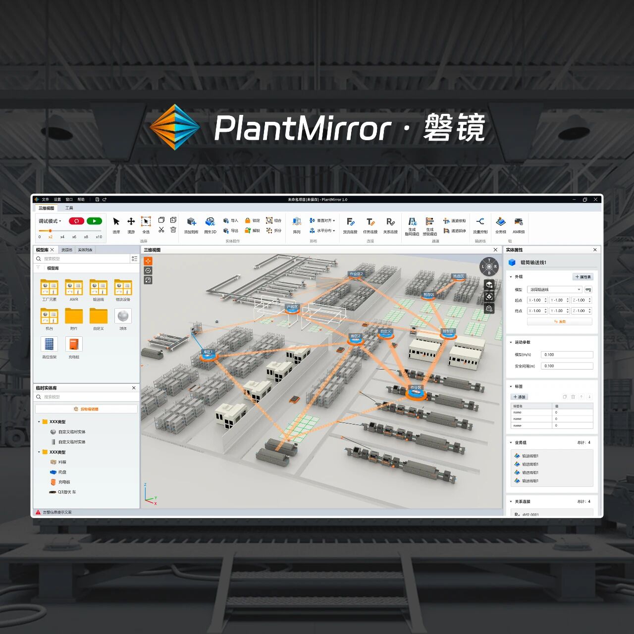 磐镜・PlantMirror是一款面向智能制造与物流领域的通用型3D集成物流仿真平台,覆盖移动机器人、物流、生产线布局、人机工程四大场景。其通过零代码、高易用、高灵活性的设计,能帮助用户高效完成大规模工厂的产线布局、物流规划和方案验证,大幅提升规划效率与方案可靠性。