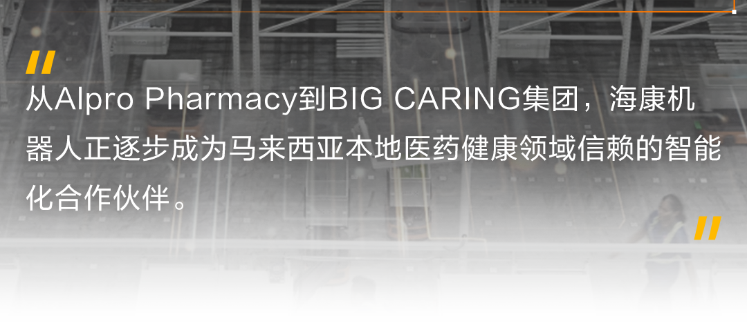 每一次跨越国界的合作,都是对本地需求的一次深刻回应。在新加坡,海康机器人已助力HPL、INNEOVA等企业优化其物流链路;在马来西亚,从大型连锁处方药局大专药剂(Alpro Pharmacy)到BIG CARING集团,海康机器人正逐步成为本地医药健康领域信赖的智能化合作伙伴。