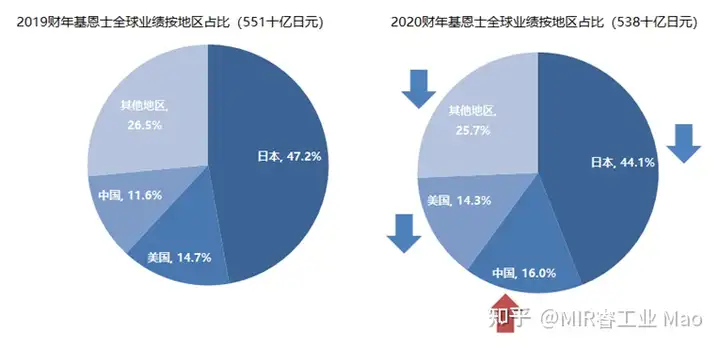 2020财年基恩士全球营业收入业绩按地区看,只有中国业绩实现正增长,并且中国市场业绩占比以16%超过美国市场业绩占比,成为基恩士海外市场业绩排名第一的地区。