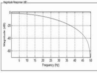 考虑到软件计算时间和硬件存储空间,滤波阶数不宜过多,所以将通带适当放宽,阻带信号衰减设为60dB,采样率为24K,通带截止频率为5Hz,阻带截止频率为50Hz,计算出达到设定的滤波效果需要1053阶[16]。图4为该滤波器的幅频响应。由图4中可以看到,在50Hz及之后的频率段信号衰减到60dB以下,有效的抑制了采样信号中工频信号和其它高次谐波的干扰。