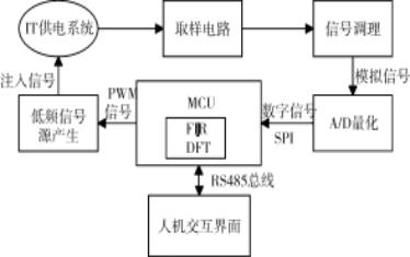 低频交流注入法是在IT供电系统的绝缘变压器的负荷中性点注入一个低频交流信号,通过实时监测IT系统的等效绝缘电阻和分布电容,实现对供电系统整体绝缘状态的监测。