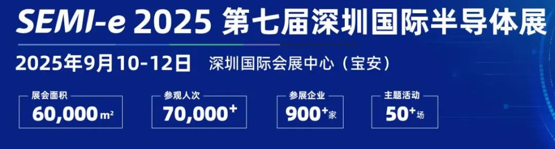 SEMI-e 2025第七届深圳国际半导体展(简称:SEMI-e) 将于2025年9月10-12日在深圳国际会展中心(宝安新馆)隆重举行!本届展会将聚焦半导体行业的各个细分领域,全面展示半导体行业的新技术、新产品、新亮点、新趋势,汇聚超过900家展商,以人工智能、算力存储、芯片设计、晶圆制造、先进封装、半导体专用设备及零部件、先进材料及碳材料、碳化硅/氮化镓等第三代半导体、IGBT、功率器件、电力电子及汽车半导体等为主,全面展示集成电路和半导体的制造和解决方案。