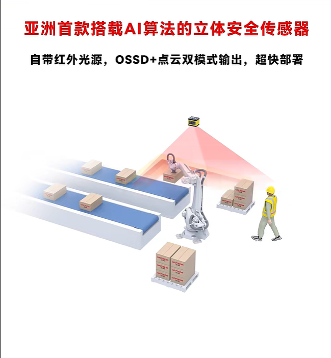 ☑ AI人物识别算法加持,实现区域内人员存在检测功能,有效防止机器人意外启动。
