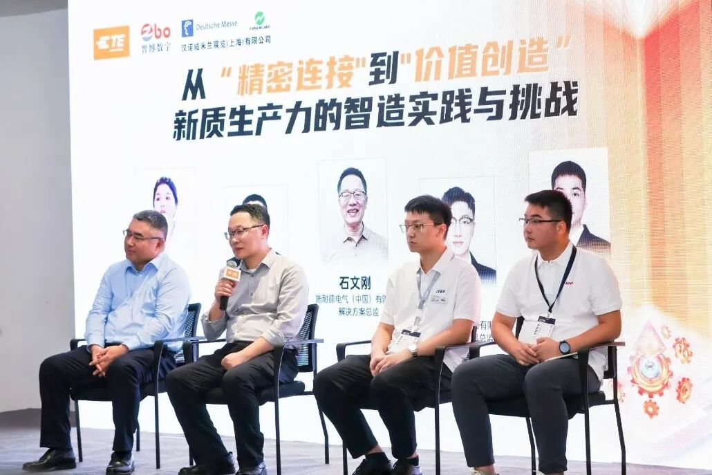 以《从“精密连接”到“价值创造”:新质生产力的智造实践与挑战》为主题展开对话,由智博数字林少枝主持,汇聚泰科电子宋湘辉、施耐德石文刚、新时达唐若彬、步科王洋洋四位工业自动化行业人士,分享了企业在技术创新、产品实践及全球化方面的经验。