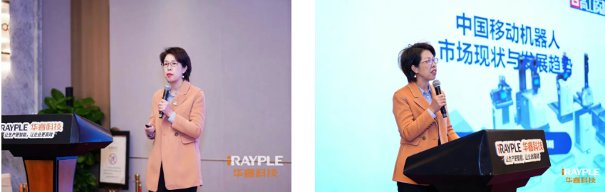 在嘉宾演讲环节,高工机器人总经理罗思娜系统阐述了中国移动机器人市场的发展态势与未来走向。她指出,行业在保持规模增长的同时,正经历结构性变化:一方面,出海已成为确定性趋势;另一方面,竞争进一步向头部集中,企业通过强强联手以应对竞争加剧与盈利压力。随着行业进入整合深化阶段,具身智能、人机协同及轮式人形机器人等技术方向,正推动产业从规模扩张向系统智能化跃迁。她强调,生态协作与技术创新已成为破局关键,并期待华睿科技携手生态伙伴共赢新机遇。