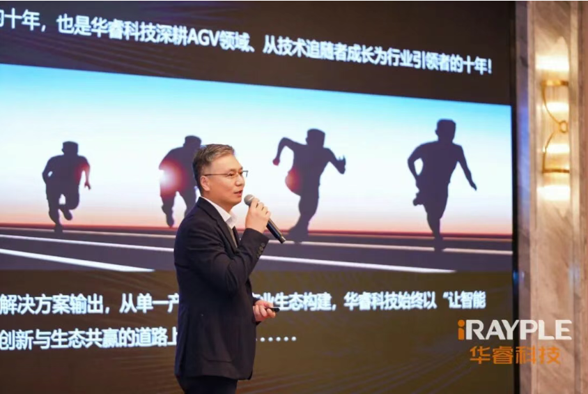 在本次大会的开场致辞中,华睿科技副总裁熊玻回顾了在移动机器人领域的十年深耕——从持续的技术积淀到系统的生态构建,逐步形成了覆盖多行业场景的全栈产品与解决方案能力。展望未来,华睿科技将以AI与具身智能为驱动,进一步深化机器人与工业场景的融合能力;以质量、服务与成本优势,构建可持续的信任体系;以协同合作与价值共生,持续拓宽智能制造的生态边界。