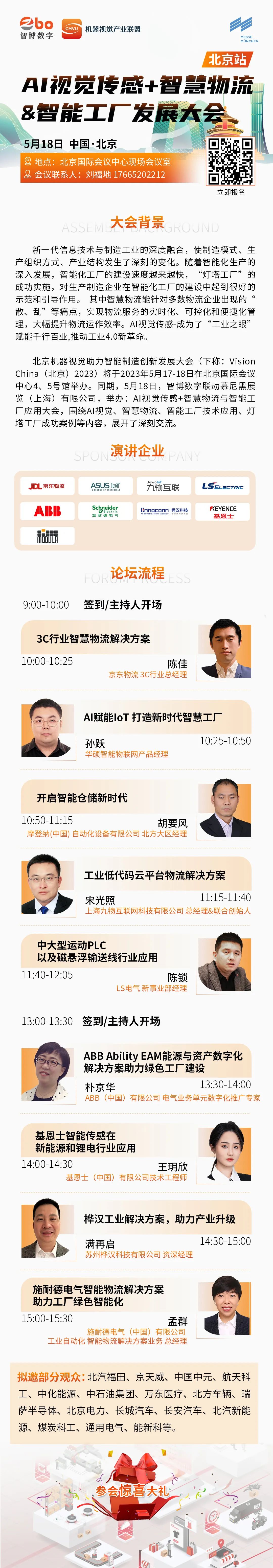 2023年5月17-18日,中国机器视觉助力智能制造创新发展大会暨VisionChina(北京)在北京国际会议中心盛大开启,同期,5月18日智博数联动机器视觉产业联盟、慕尼黑展览(上海)有限公司,举办AI视觉传感+智慧物流与智能工厂应用大会圆满结束。随着智能化生产的发展,能化的建设速度越来越快,越来越多灯塔工厂案例的成功实施,对生产制造企业在智能化工厂的建设中起到很好的示范和引导作用。其中智慧物流能针对多数物流企业出现的散、乱”等痛点,实现物流服务的实时化、可控化和便捷化管理,大幅提升物流运作效率。AI视觉/智能传感已成为了“工业之眼赋能千行百业,推动工业4.0新革命。