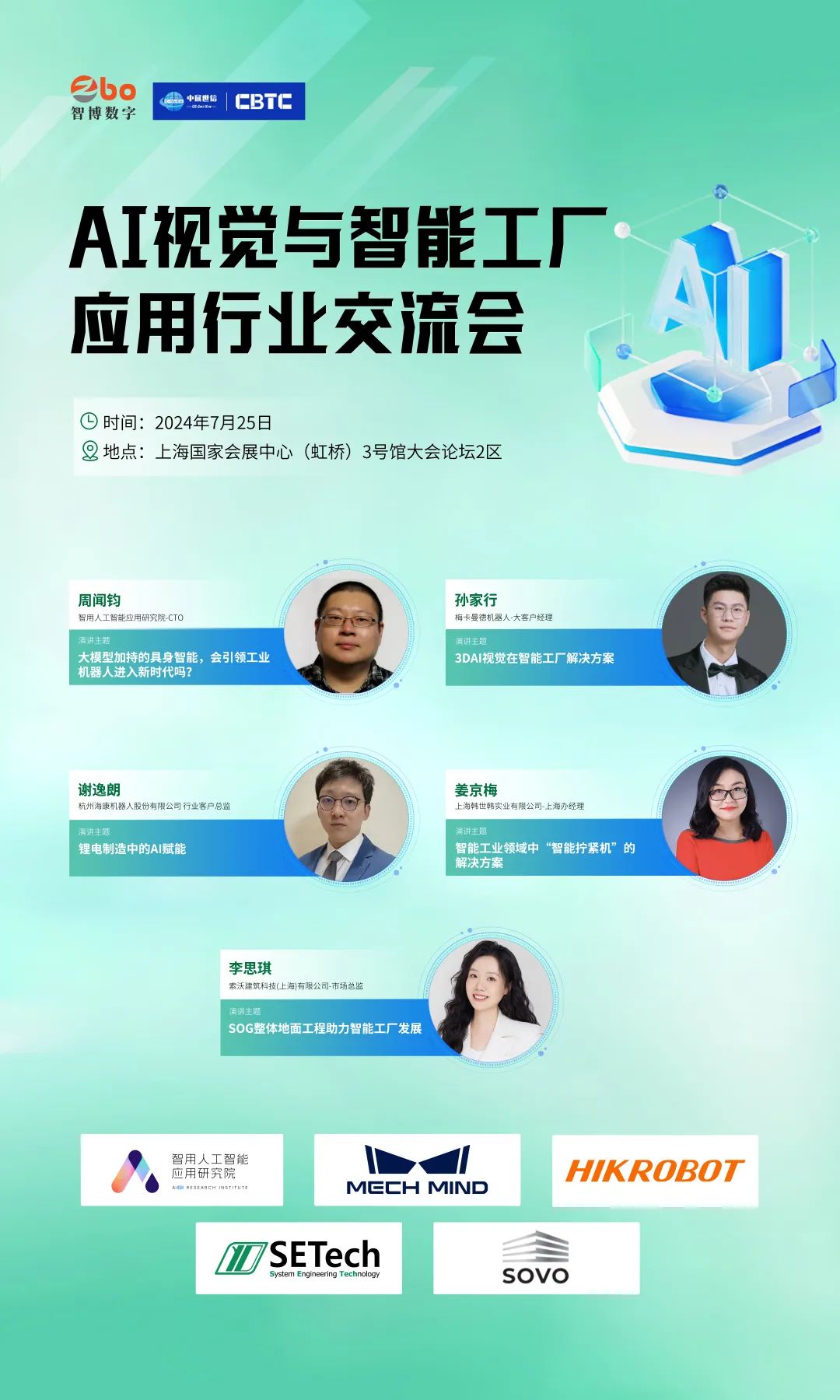 2024年7月25日,在上海国家会展中心(虹桥)3号馆大会论坛1区,由智博数字、上海中展世信会展集团有限公司联合举办AI视觉与智能工厂应用行业交流会拉开帷幕。