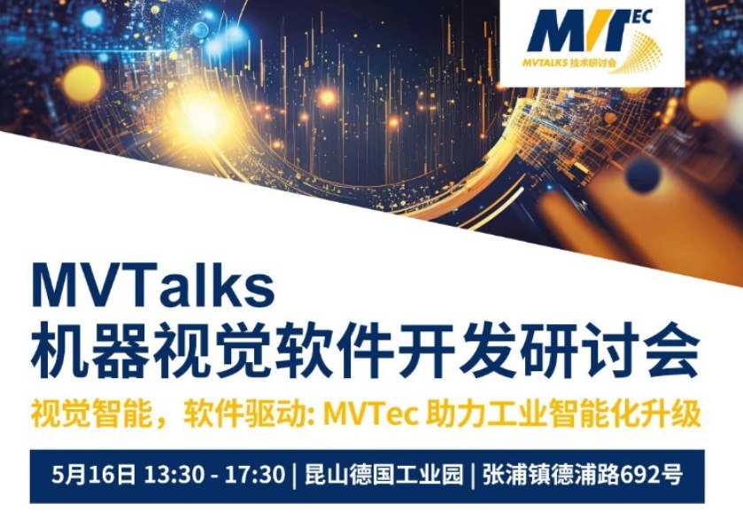 今年 MVTalks 技术研讨会华东场,将于5月16日在昆山举办,MVTec 的专家们以提高生产效率与精度为终极目标,将从超过26年机器视觉的视角出发,深度剖析市场走势,介绍最新技术产品,助您精准把握行业动态。您将与现场的 MVTec 专家面对面交谈,寻找高效的机器视觉解决方案。