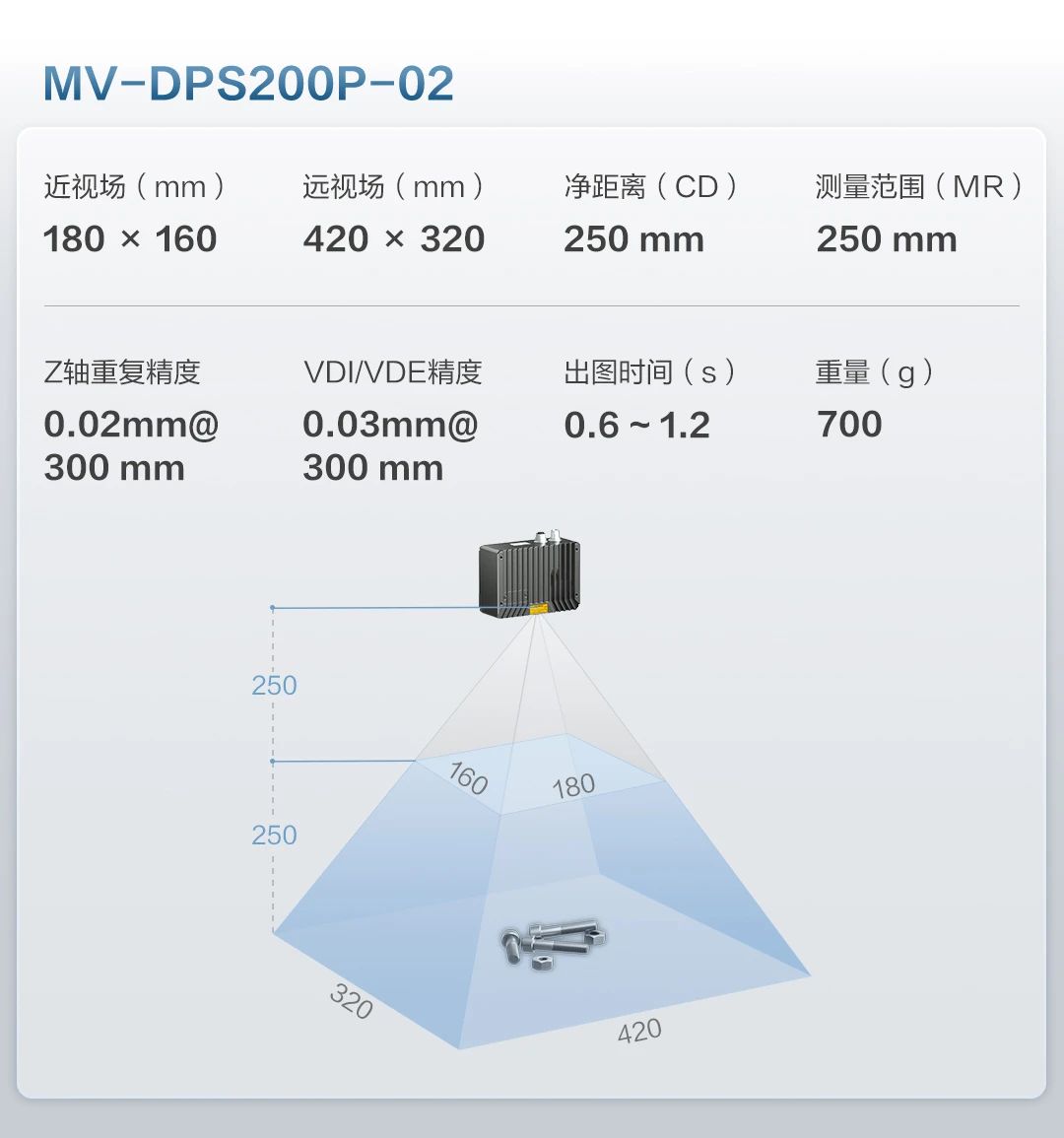 MV-DPS200P-02采用投影结构光技术,最快采集时间低至0.2S,可满足大部分生产场景的实际需求。