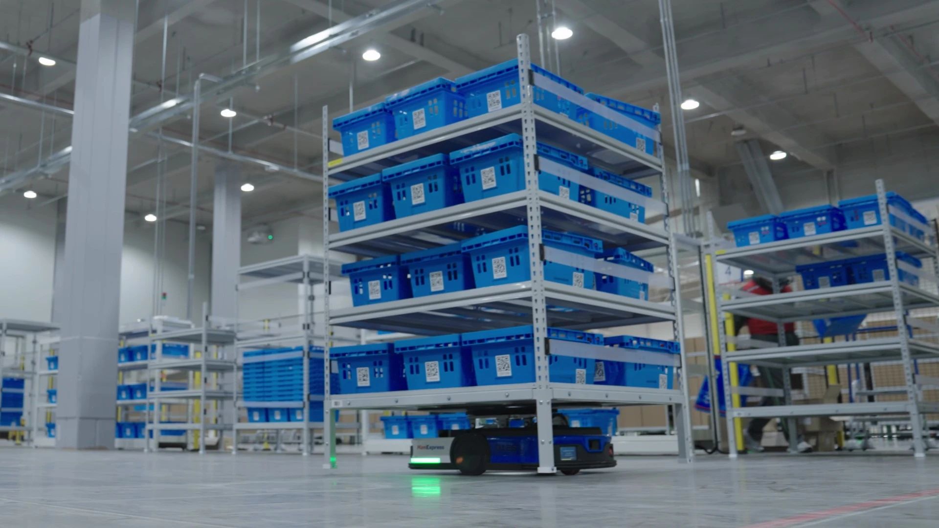 HanExpress 在其全新的 4000 平方米仓库内部署了海康机器人的“货到人”解决方案,包括 50+台AMR、RCS机器人控制系统。移动机器人将库存货架自动运送到工作站,再将拣选好的物品由工作站运输到传送带,实现拣选-配送的全流程自动化。