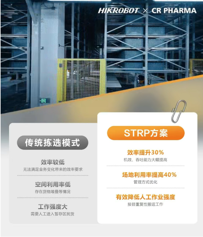 为了践行“润泽健康,共创美好”的企业使命,医药流通巨头华润医药选择海康机器人,双方以STRP方案为核心,在江苏南通共同打造了标杆级智能仓库,聚焦行业“拆零效率低、空间压力大”的挑战,以创新技术驱动大健康产业发展,为医药流通行业的智能化升级提供了新思路。
