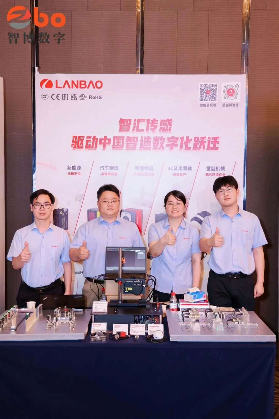 余慧博先生介绍到上海兰宝传感深耕工业传感领域27年,是国家级专精特新小巨人企业,拥有360+专利版权及年产能1500万只的智能工厂。兰宝传感掌握16项核心技术,包括智能点云识别、高精度TOF光电测距、电磁直线编码位移检测等,覆盖电感、电容、光电、视觉、安全等全品类传感器。在智慧物流领域,激光雷达实现AGV精准导航,微形光电传感器以4.2mm超薄设计解决硅片、手机盖板检测难题;汽车制造中高防护电感传感器提升焊接合格率,3D线扫传感器实现车灯毫米级缝隙检测;光伏行业采用激光位移传感器非接触测量硅片厚度,精度达1μm;锂电生产通过CCD线径测量极片纠偏,超声波传感器保障电解液零漏检。兰宝产品已应用于宁德时代、博众精工、阳光电源等龙头企业,并建立IPD集成开发与全面质量管理体系,通过ISO 9001/14001/45001认证。未来,兰宝传感将持续以"传感+智能"赋能3C电子、锂电制造等产业,推动工业数字化高精度、高可靠性转型,践行"传递世界,感知未来"的使命!