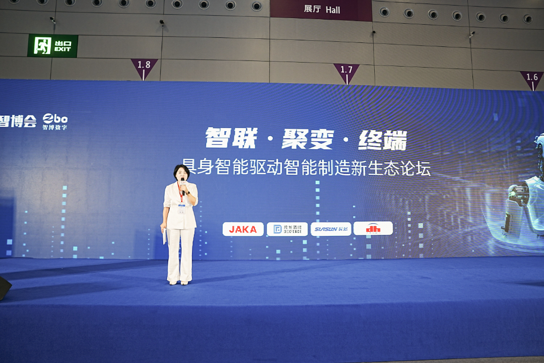 沈艳女士介绍到遨博智能深耕协作机器人领域,是国内首家累计销量突破 30000 台的企业,其核心技术自主可控,全栈式研发覆盖核心零部件、机器人软件及本体,自研 ARCS 操作系统与 ARAL 算法库,推出 iS、iH、S/C 系列等多品类协作机器人,通过 PL=d,CAT3、SEMI S2 等多项权威认证,兼具本质安全、易集成、高柔性优势,40 分钟即可快速部署,10 分钟完成切线。应用场景广泛,在汽车领域实现玻璃涂胶、电池检测等高精度作业,3C 行业完成 PCB 锁付、显示模组上下料,还赋能新能源、机械装备、半导体等领域。