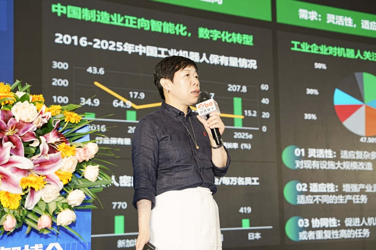 孟群女士分享到施耐德电气深耕中国市场,施耐德顺势推出从咨询到软硬件的整体解决方案。其方案覆盖咨询规划(精益生产、灯塔工厂设计等)、硬件(传感器、控制器、伺服系统等)与软件(生产执行、机器人调度管理系统等),依托 EAE 开放自动化平台实现 IT/OT 融合。在灯塔工厂应用中,机器人赋能柔性产线,使转换时间缩短 90%、能源成本节省 90%。