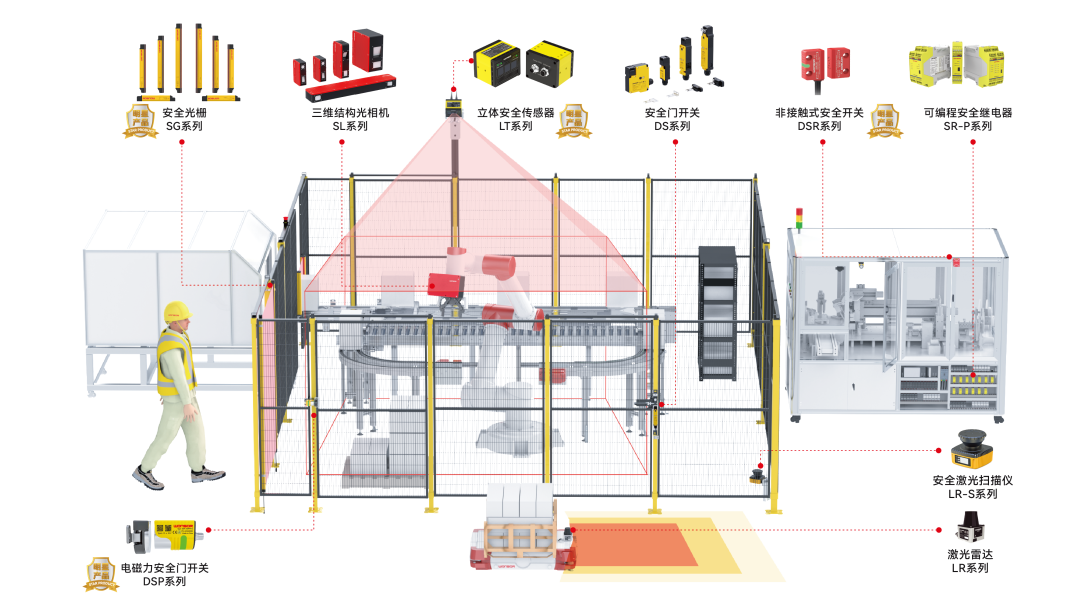 在产品布局上,湾测已形成覆立体安全传感器、四级无盲区安全光栅、安全门开关等多品类的工业安全产品矩阵。尤为值得关注的是其推出的亚洲首款 AI+3D + 安全的立体安全传感器 LT 系列,该产品集传感与边缘 AI 算法于一体,已在汽车制造、新能源电池、光伏、3C、物流等行业落地近 1000 个应用场景,成功解决传统安全防护灵活性不足的痛点,实现安全与效率的最优平衡。